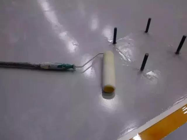 4.面層噴涂后,如存在氣泡現(xiàn)象應(yīng)用消泡滾筒,在地坪上來回滾動,最后讓其自行流平即可。