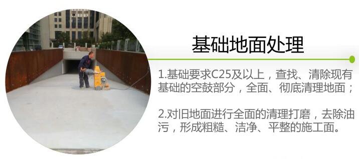 查找、清除現(xiàn)有基礎(chǔ)的空鼓部分,并全面、徹底清理、清潔地面;對(duì)舊地面進(jìn)行全面的清理打磨,去除油污,形成粗糙、潔凈、平整的施工面。