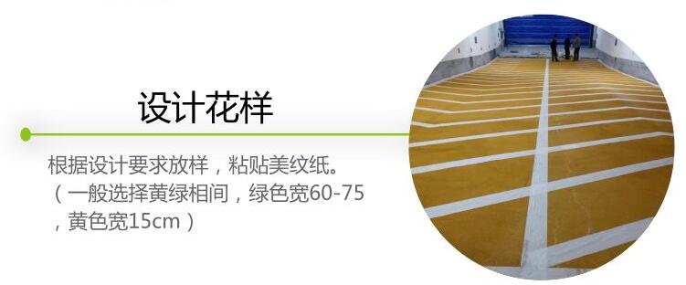 根據(jù)設(shè)計(jì)要求放樣,粘貼美紋紙。(一般選擇黃綠相間,綠色寬60-75㎝,黃色寬15㎝)。